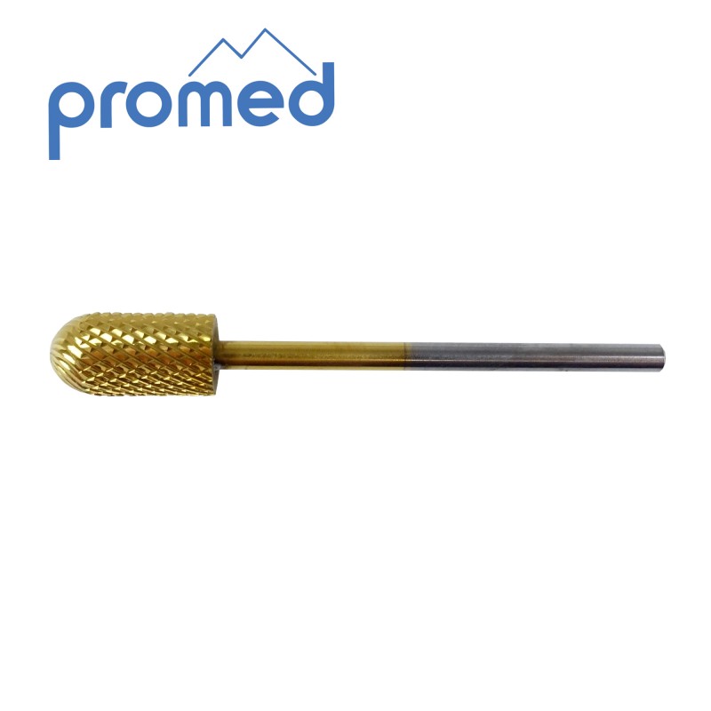 Pozlatený brúsny nadstavec sa využíva na úpravu prírodných ale aj skrátenie a úpravu umelých nechtov. Celková dĺžka nadstavca je 4,8 cm, dĺžka samotnej upínacej časti je 3,8 cm. Nadstavec sa taktiež môže použiť aj na odstránenie gélu, či akrylu. Pomaly sa nahrieva, preto je ošetrenie nechtov príjemné. Rozsah otáčok je 25 000 ot./min. Vhodný do všetkých nami ponúkaných brúsok Promed.