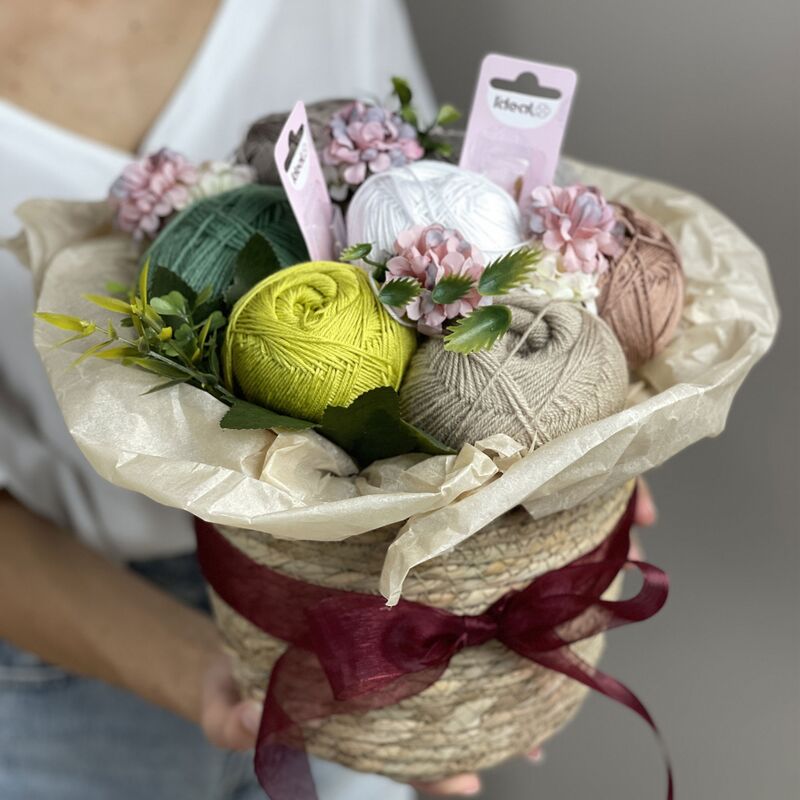 Hľadáte výnimočný darček pre kreatívnu dušu? Prekvapte milovníčku pletenia a háčkovania. Inšpirujte k ručnej tvorbe netradičnou kyticou z krásnych farebných klbiek! Táto kytica z priadzí je ideálnym praktickým darčekom pre začiatočníka v pletení, ale aj pre skúsenú pletárku.