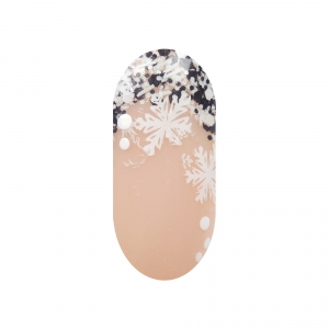 Tento glitrový sneh je vhodnou ozdobou na zimné obdobie. Sneh obsahuje čierne glitre s bielymi bodkami a čiarkami. Nanášame ho v tenkých vrstvách spolu s gélom a necháme necht vytvrdnúť v UV lampe 2 minúty. Ak je zdobenie hotové, sneh zalejeme gélom a opäť necháme vytvrdnúť v UV lampe na 2 minúty. Nakoniec môžeme necht oživiť pečiatkou, ktorú zafixujeme nadlakom podlakom.