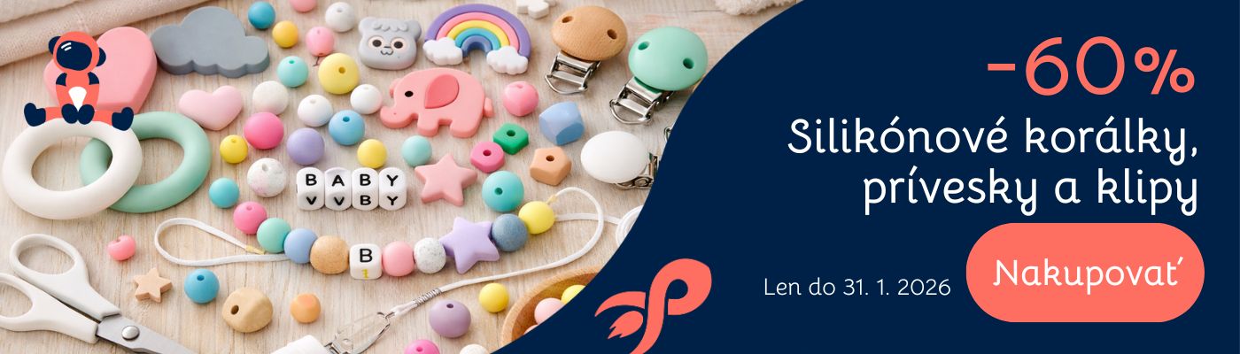 Kreatívne komponenty na tvorenie – silikónové a drevené korálky, hryzátka, klipy a doplnky.