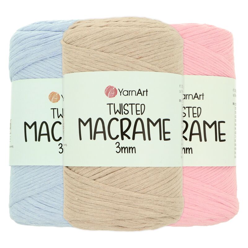 - YarnArt Macrame Rope 3mm a 5mm – pevné špagáty vhodné na detailné vzory (3mm) aj veľké projekty ako koberce, košíky či nástenné dekorácie (5mm).