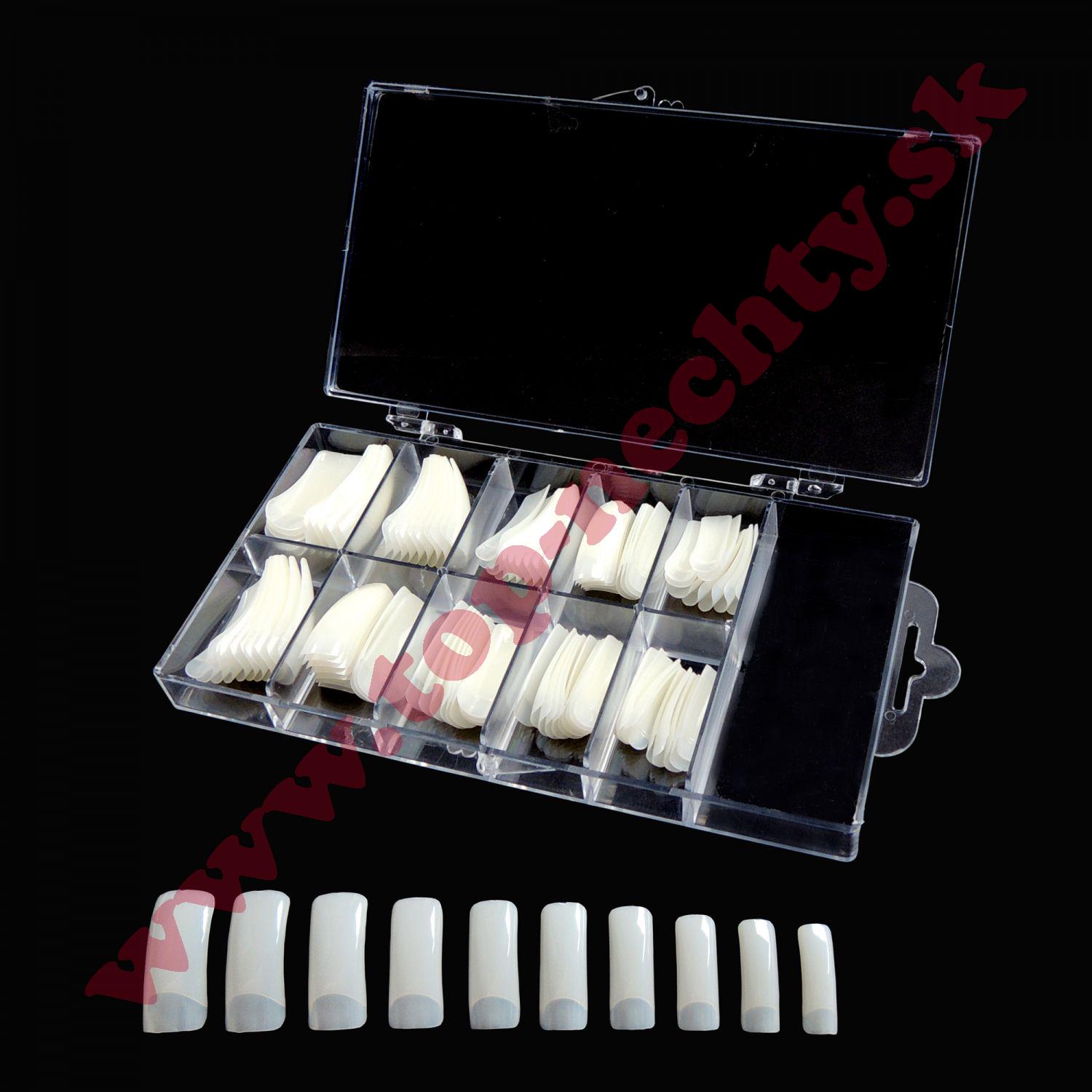 Mliečne tipy, ktoré sú určené na predlžovanie nechtov. Pri výbere nechtových tipov nezabúdajte na správnu veľkosť. Tip by nemal byť širší ani užší ako váš prírodný necht. Tipy lepíme špeciálnym lepidlom na umelé nechty. Nikdy nepoužívajte sekundové lepidlo.
