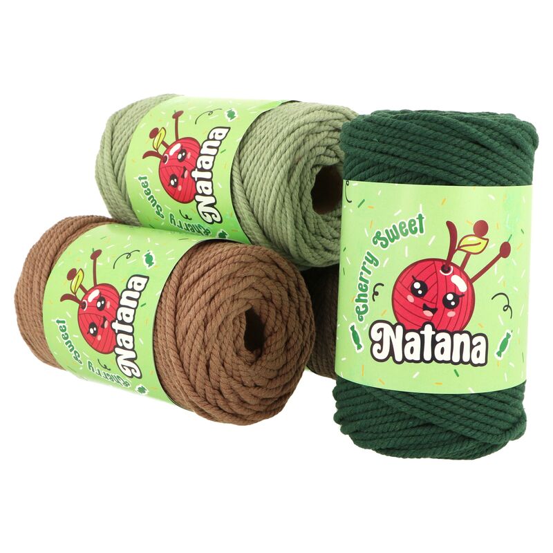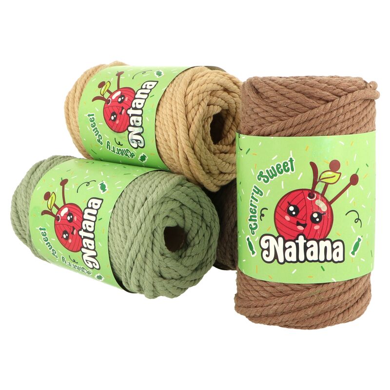 Natana Macrame String 3 mm je kvalitný makramé špagát vyrobený z 80 % recyklovanej bavlny a 20 % polyesteru, navrhnutý špeciálne pre makramé techniky, uzlovanie a jemnú handmade tvorbu. Vlákno je tvorené stočením viacerých jemných nitiek, čo ho robí ideálne rozčesateľným – skvelé na strapce, pierka a dekoratívne zakončenia. Vďaka svojej jemnej textúre, mäkkosti a odolnosti je vhodný aj pre začiatočníkov. Špagát má hrúbku 3 mm, dĺžku 125 m a váži približne 250 g – ideálny pomer na stredne veľké kreatívne projekty.