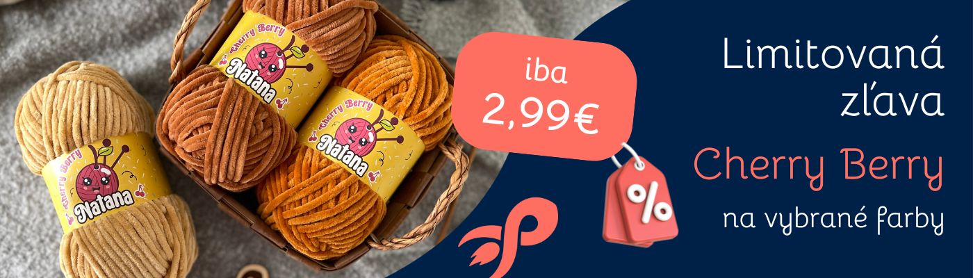 - Natana Cherry Berry (ihlice 6,5mm, háčik 4,5mm) - veľmi jemná detská priadza so špeciálnou Smooth Touch technológiou